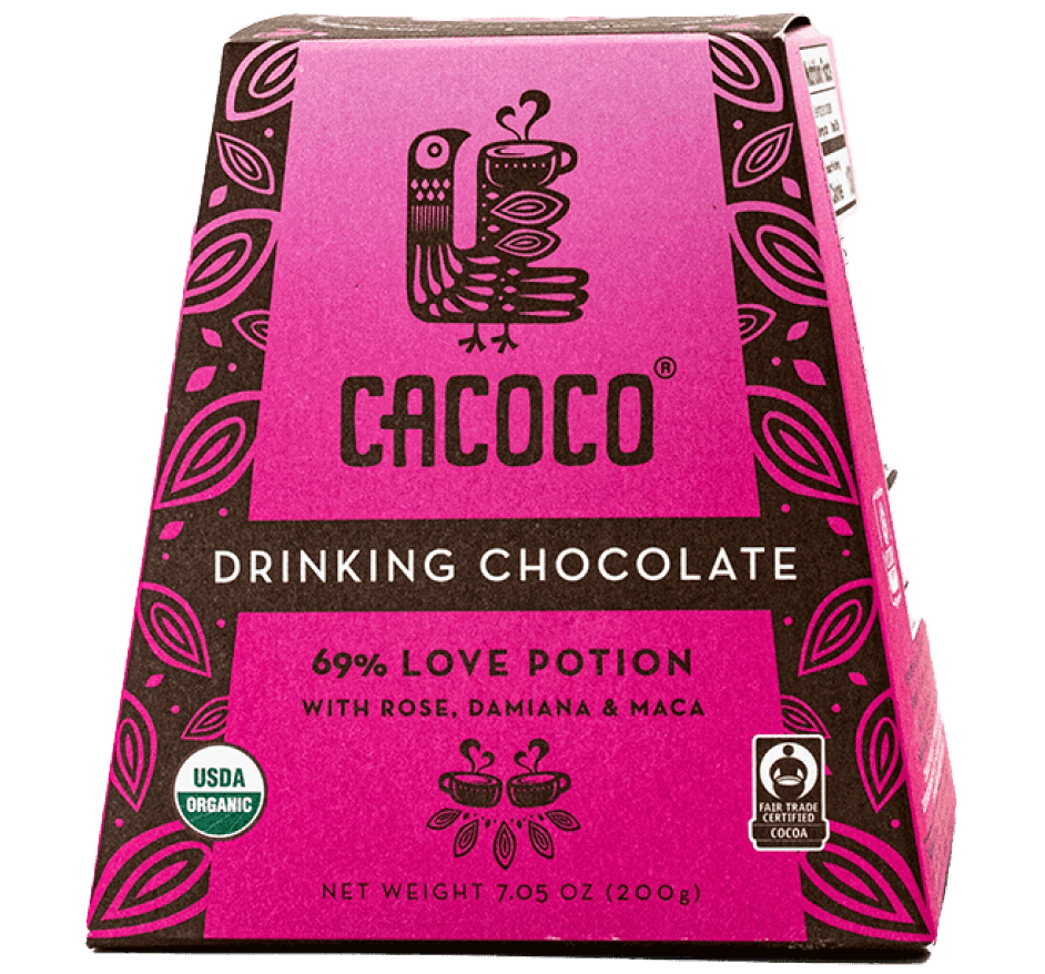69% Love Potion CaCoco Cacao is a 7 oz blend featuring organic, fair-trade cacao, coconut sugar, adaptogens, and spices. Easily prepared with hot water, this creamy, uplifting cacao elixir is a limited edition creation designed to inspire love. Made with Fair-Trade, Organic cacao and infused with Damascus rose, maca, damiana, cardamom, and raspberry, this decadent and delicious elixir will melt you and your loved one’s heart.