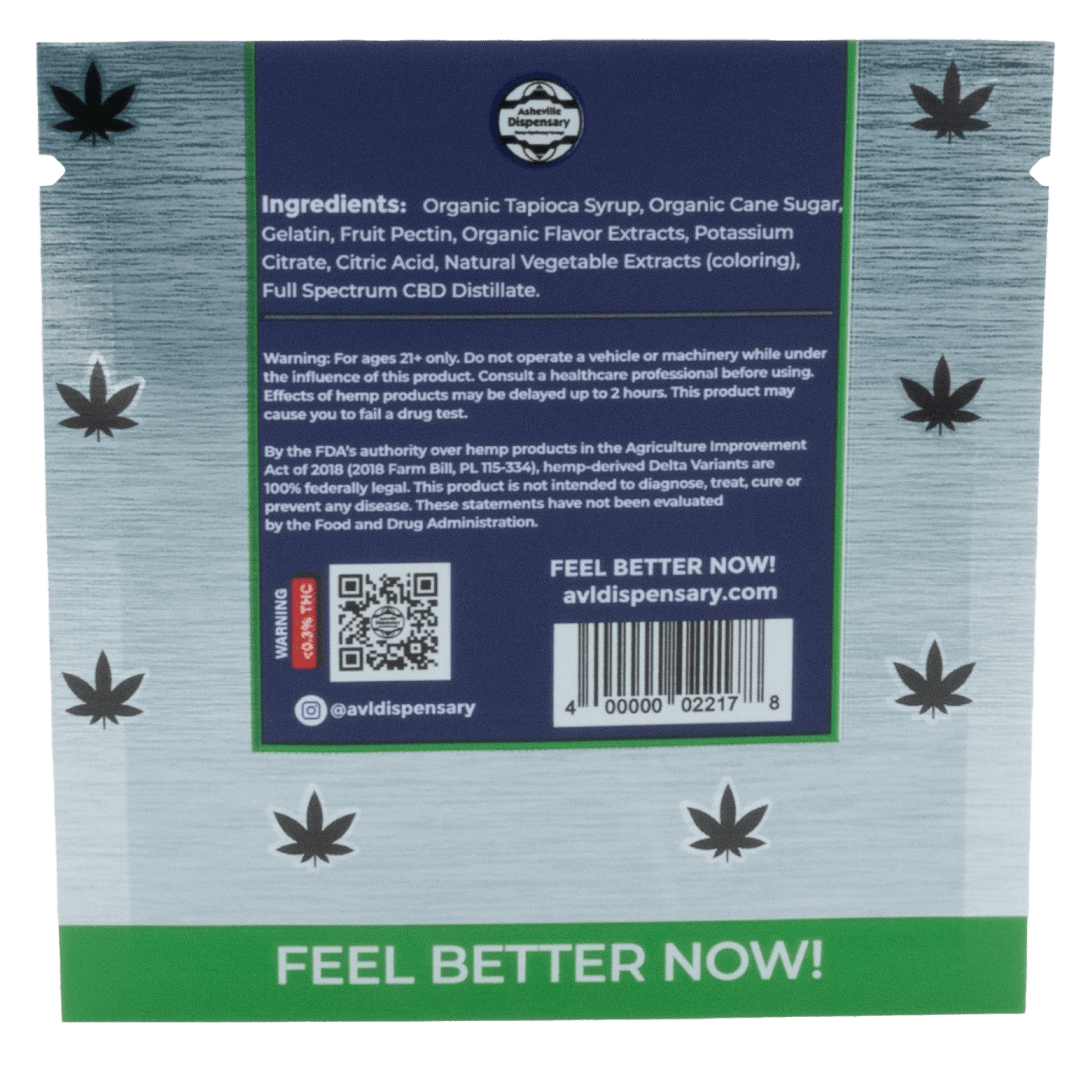 Asheville Dispensary’s Single Serve Broad Spectrum CBD Gummy in Mandarin Orange flavor combines the zesty taste of citrus with the benefits of CBD. Each gummy contains a 50mg dose of CBD, providing a convenient and tasty way to incorporate CBD into your routine.