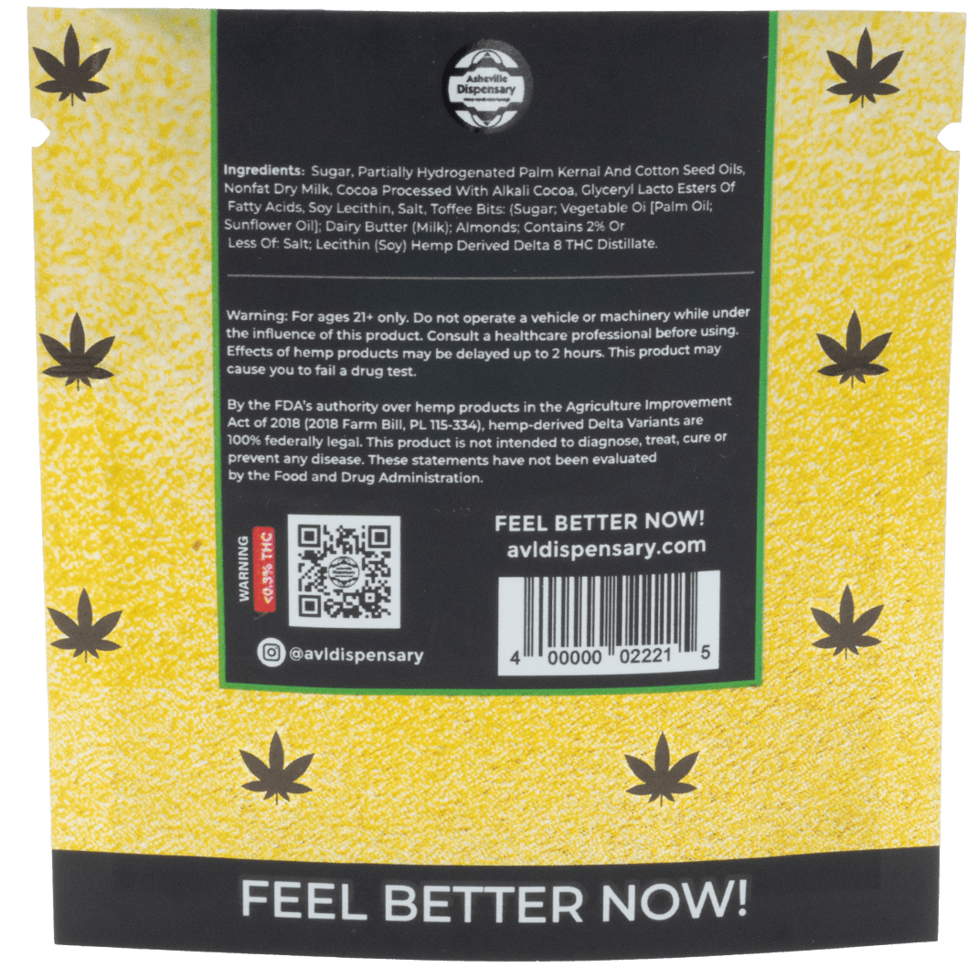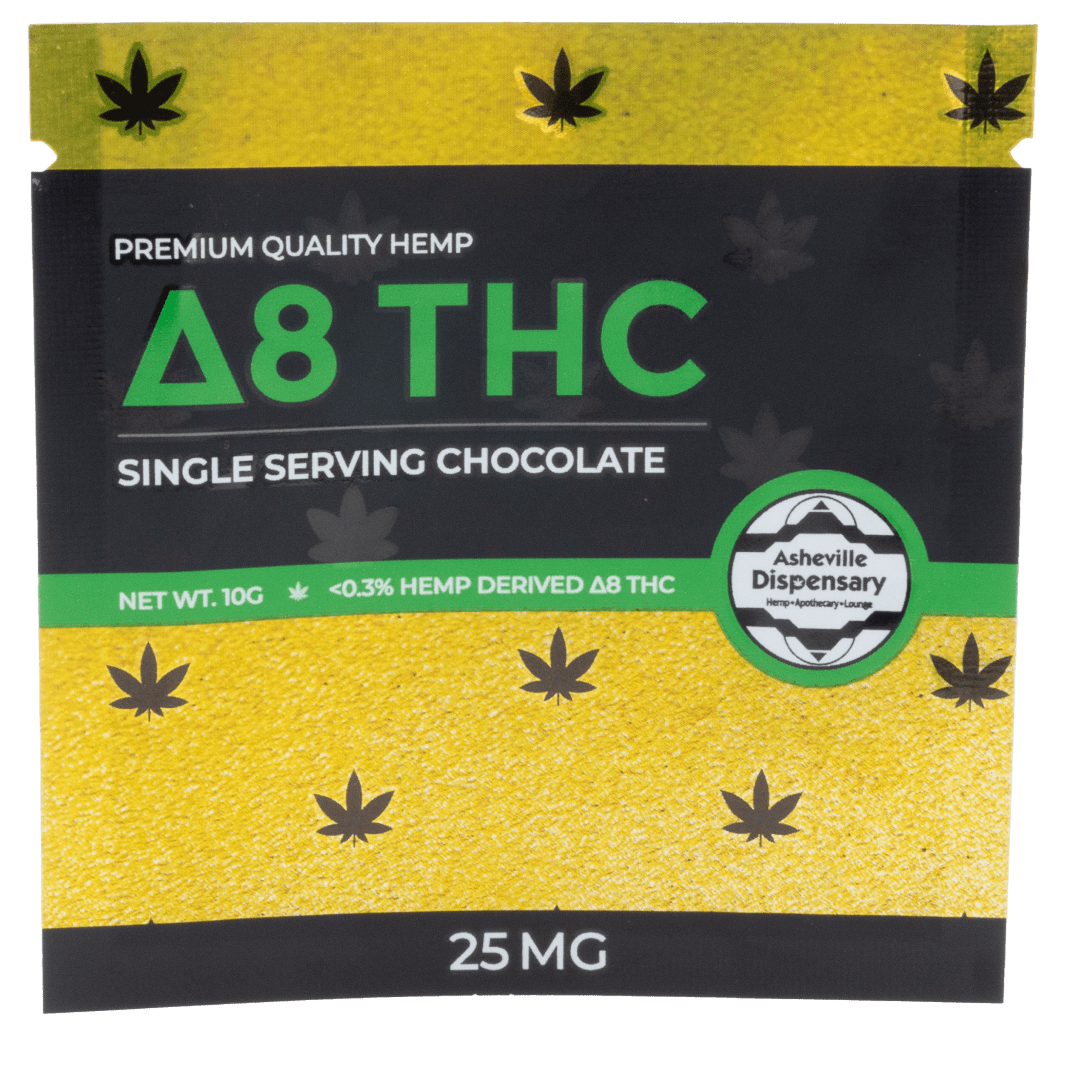Asheville Dispensary’s Single Serve Delta 8 Chocolate – 25mg combines cannabis with the sweet taste of chocolate. Each chocolate contains a potent 25mg dose of Delta 8 THC, providing a consistent and enjoyable experience.