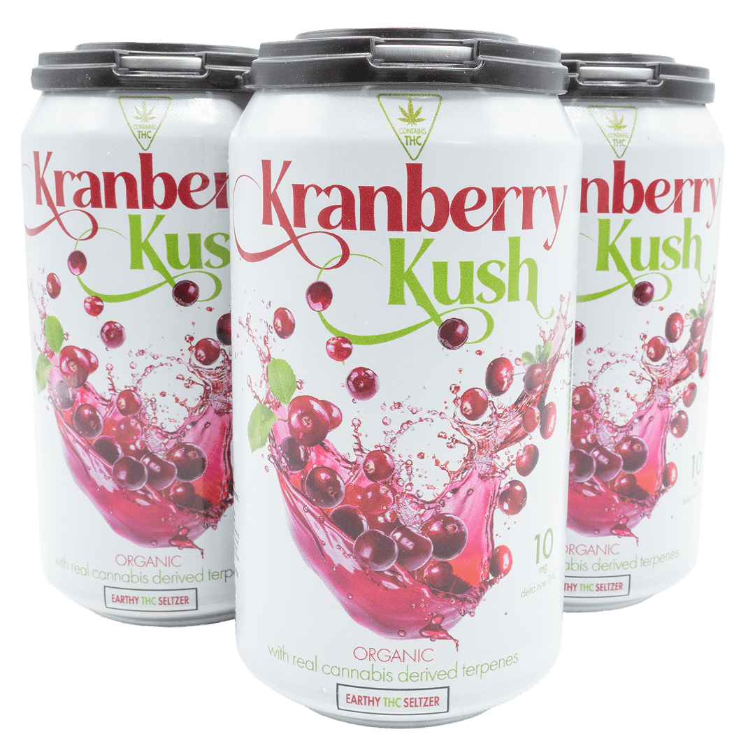 The Earthy Delta 9 Seltzer – Kranberry Kush delivers a crisp cranberry flavor with kush-inspired notes and 10mg of Delta 9 THC for a smooth, uplifting buzz.