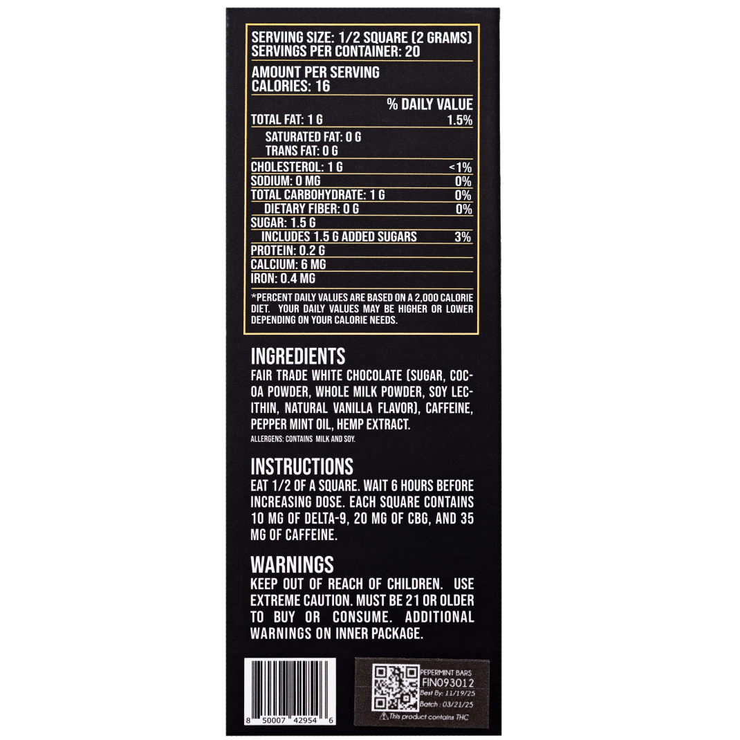 Our Delta 9 White Chocolate Bar – Peppermint is crafted with high-quality ingredients to provide a premium product that ensures a consistent and enjoyable experience.