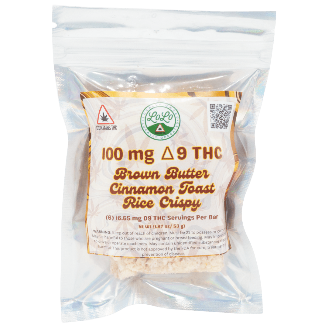 LoLo Bars – Delta 9 Rice Crispy – Brown Butter Cinnamon Toast Rice Crispy