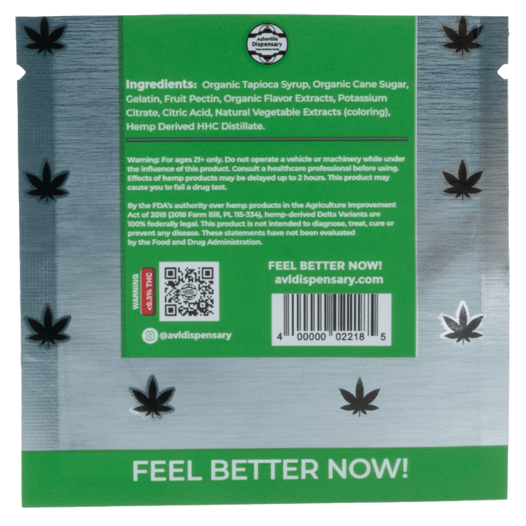 Asheville Dispensary’s Single Serve HHC Gummy – 25mg Sour Apple offers a delicious balance of tangy and sweet flavors, providing a delightful and consistent 25mg dose of HHC in each gummy.