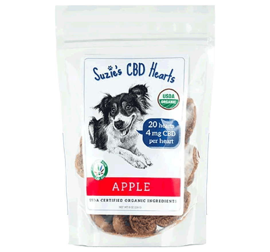 CBD Content: 4 mg per treatSuzie’s CBD Dog Treats: Apple Hearts 4mg 20pk – Key Features