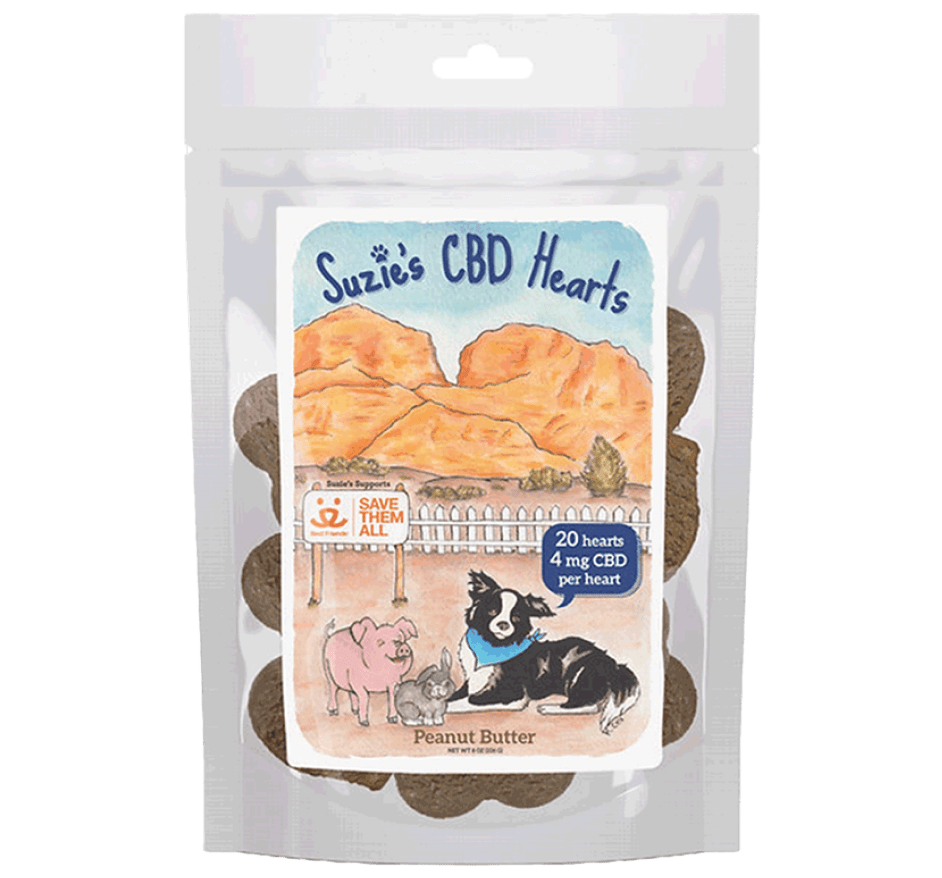 CBD Content: 4 mg per treatSuzie’s CBD Dog Treats: Peanut Butter Hearts 4mg 20pk – Key Features