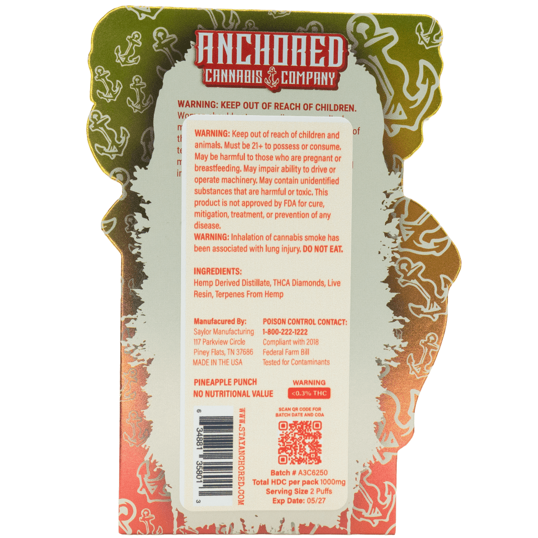 Anchored’s Pineapple Punch THCA Cart is designed for ultimate convenience and discretion. Its compact size and seamless portability make it easy to enjoy anytime, while the smooth, flavorful vapor ensures a subtle and enjoyable experience wherever you are.