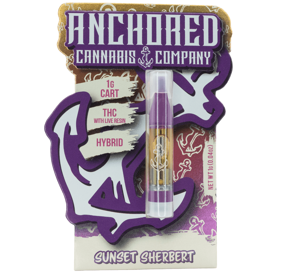Anchored’s Sunset Sherbert THCA Cart is a tasty hybrid strain, crafted with potent THC live resin. This THCA cart offers the rich flavor of candy and citrus paired with a smooth, satisfying finish.