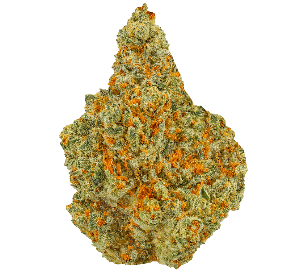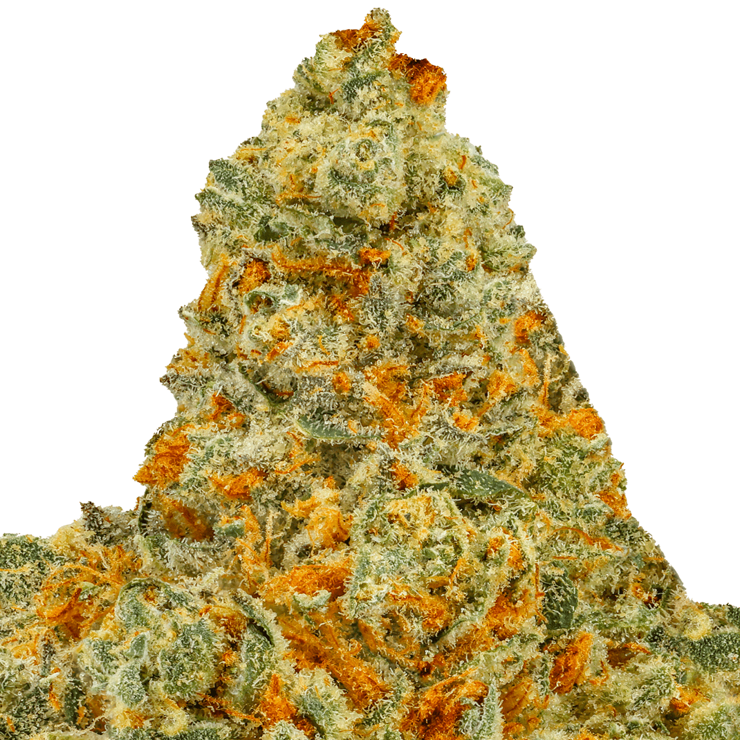 Our Honeymoon Diesel strain of THCA flower is a potent hybrid cannabis strain, created by crossing Wedding Cake and Sour Chem strains. The buds are light green, dense, and covered in vibrant orange hairs, with golden and white trichomes.