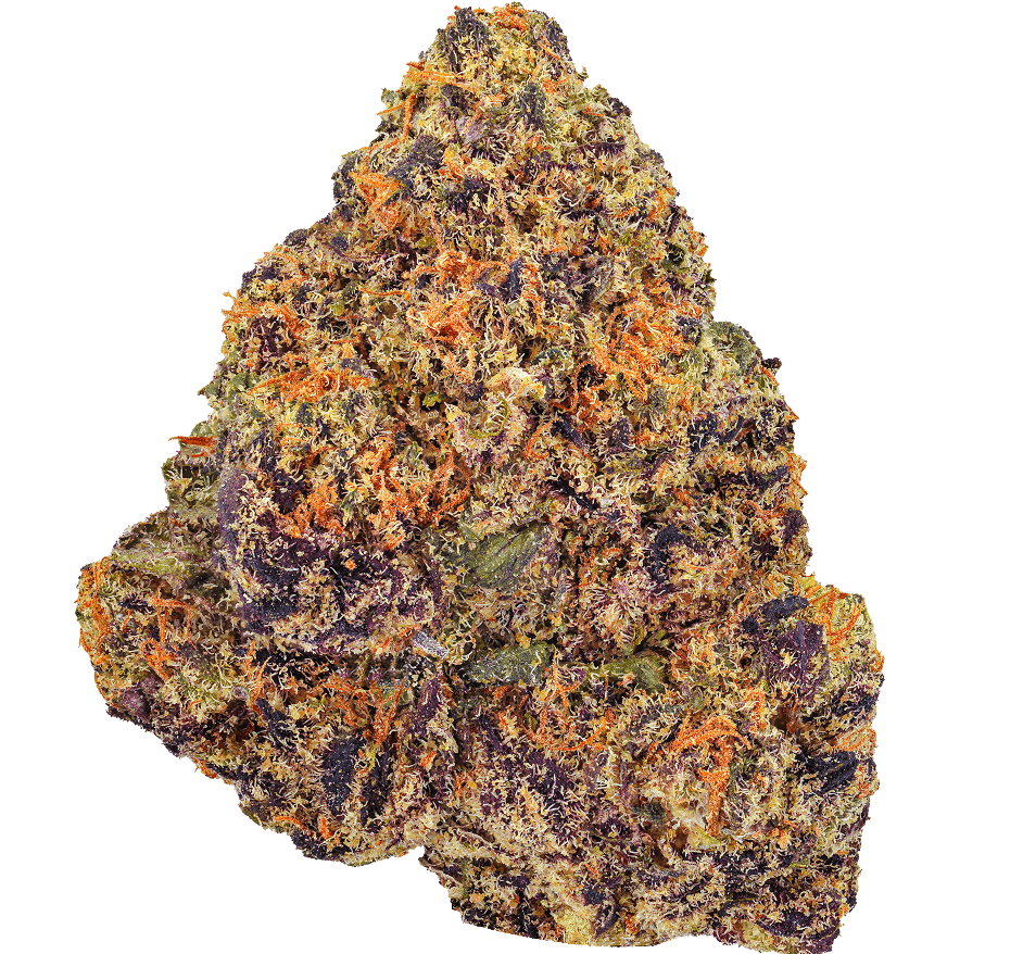 - Appearance: Dense, light green and very purple buds with orange hairs and golden/white trichomes
