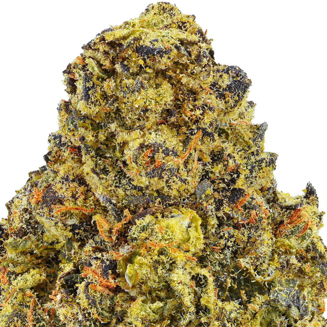 Our Runtz strain of THCA flower combines the Zkittlez with Gelato, creating a hybrid cannabis strain. The buds feature a vibrant, light green dense buds with a plethora of orange hairs and golden and white trichomes