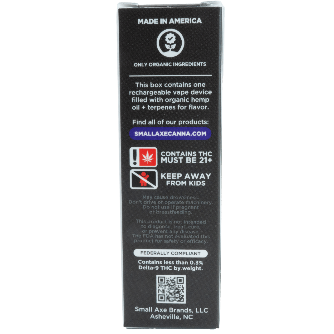 The Small Axe Toke is an advanced THCA vape, featuring the exceptional Blueberry Haze strain. This uplifting sativa strain offers an uplifted experience, blending stress relief, pain alleviation, and mood enhancement.