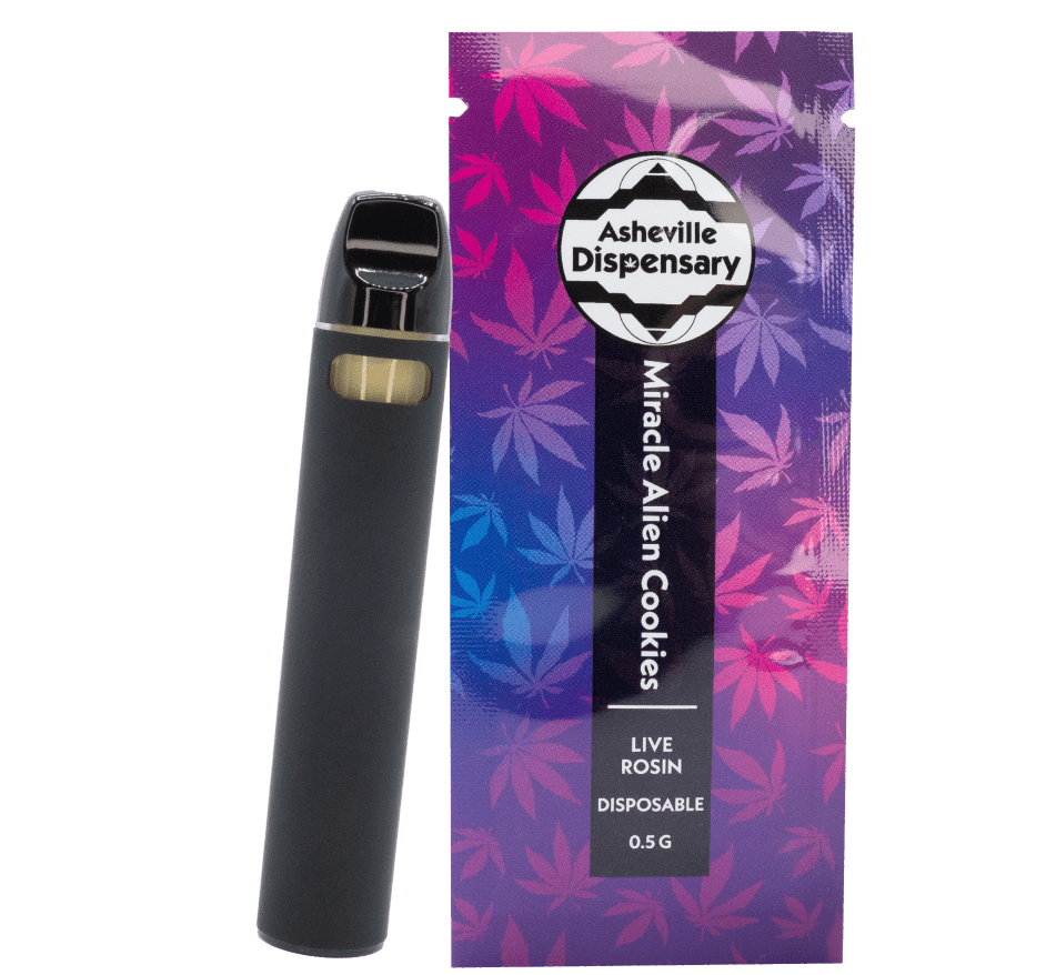 Miracle Alien Cookies THCA Live Rosin Vape offers an exceptional healing experience with a potent blend of pure live rosin, delivering therapeutic benefits and unmatched taste and aroma. Available exclusively at Asheville Dispensary locations or on our website, this vape is designed to elevate your wellness journey.