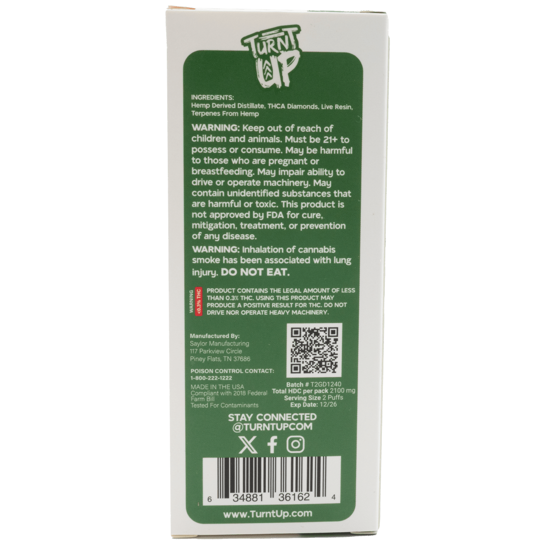 Turnt Up 2 Gram THCA Vape Dual Flavor – Convenient and Discreet