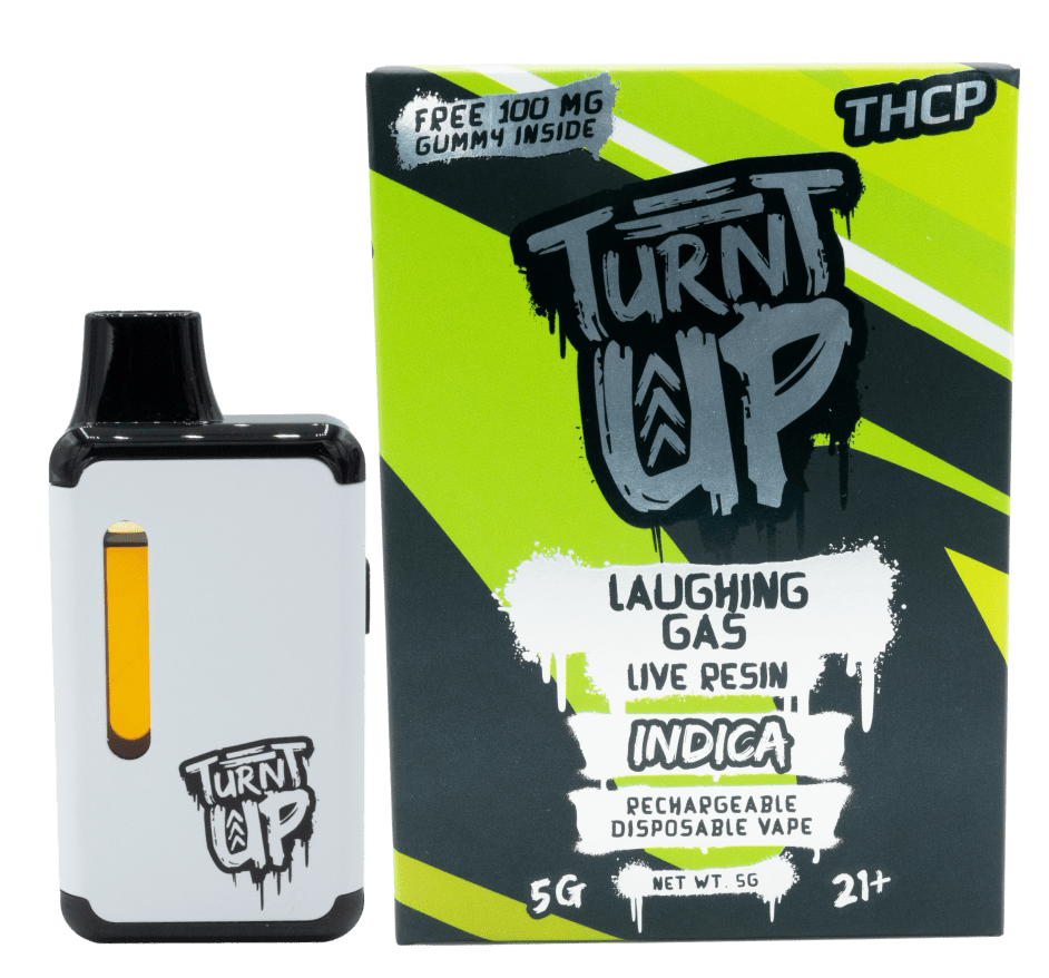 Experience a burst of flavor with the Turnt Up 5 Gram THCP vape – Laughing Gas! Packed with 5 grams of high-quality THCP, it’s perfect for chilling you out after a long day or enjoying with friends. Get ready for a smooth and flavorful experience that’s perfect for any time of the day!